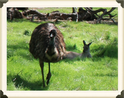 Après cette petite pause, nous continuons la route, et remontons vers le nord de la péninsule. A Minlaton, nous tombons sur une réserve d’animaux, avec des kangourous, wallabies et émeus. Un peu plus loin sur la route, c’est devant des alpagas de toutes les couleurs que nous nous arrêtons !