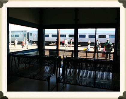 Ce matin réveil difficile après la nuit que nous avons passé, nous avons tous mal dormis et sommes crevés ! Nous allons donc accompagner Sabrina et Sully à la gare pour qu’ils prennent leur train pour Alice Springs : The Ghan. Nous attendons le train dans une salle à l’intérieur de la gare car ce matin il ne fait pas très chaud. Nous discutons tranquillement pour faire passer le temps puis vient le moment du départ. Et voilà, c’est la dernière fois que nous les voyons en Australie mais nous nous reverrons en France alors ce n’est qu’un au revoir !